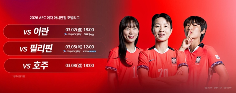 2026 AFC 여자 아시안컵 중계방송 채널, 한국 경기 일정, 대표팀 명단까지 한 번에 정리했습니다. 쿠팡플레이·SBS·KBS N sports 시청 방법 지금 확인하세요.