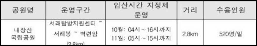 - 내장사 매표소 주차장: 탐방로와 가까워 가장 많이 이용하는 곳이에요.