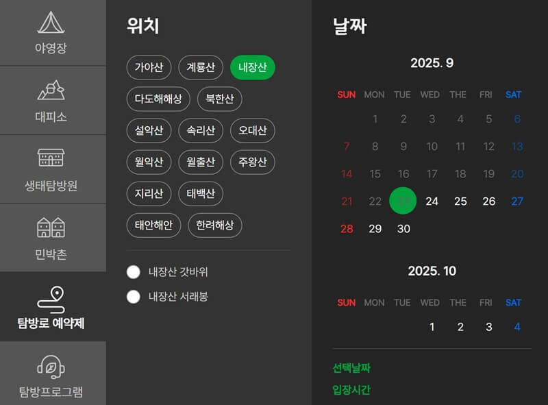 내장산 국립공원 탐방 예약 방법
