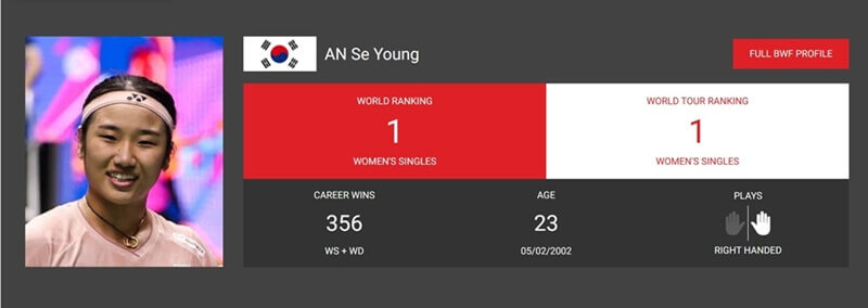 A1. 안세영 선수가 세계 랭킹 1위이며 왕즈이 선수가 그 뒤를 이어 세계 랭킹 2위를 기록하고 있습니다.