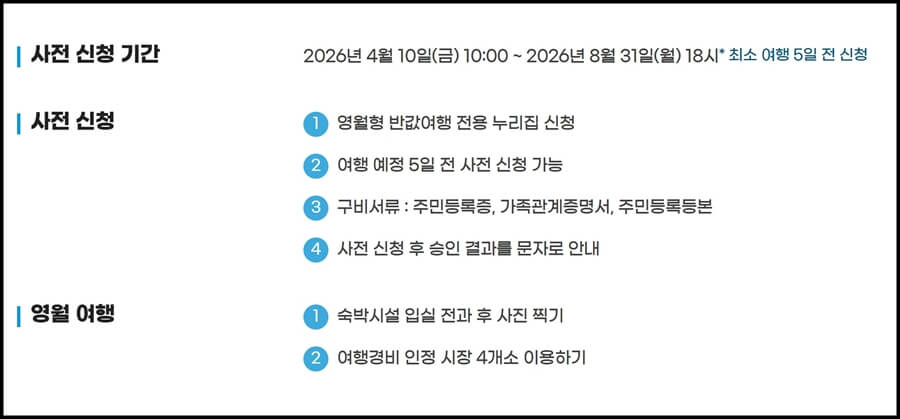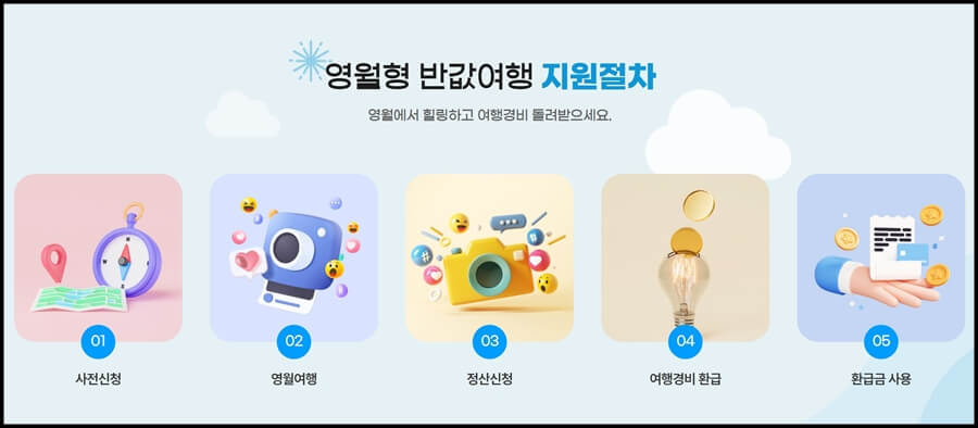 2026 영월 반값여행 신청 방법, 환급 조건, 사전 신청 절차, 지역사랑상품권 사용처, 추천 여행 코스까지 한 번에 정리했습니다. 최대 20만 원 환급, 지금 바로 확인하세요.