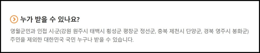 A3. 영월군 및 인접 시와 군의 주민을 제외한 대한민국 국민 누구나 혜택을 받을 수 있습니다.
