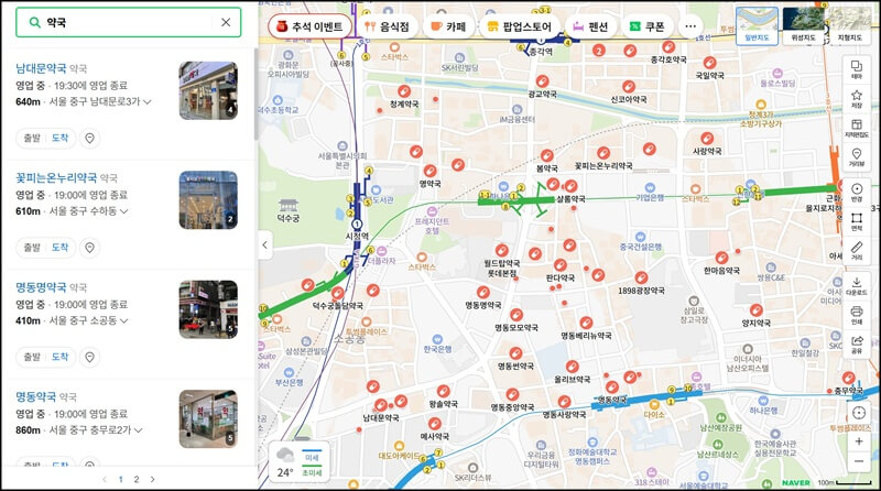 지도 검색 플랫폼에서도 공휴일 문여는 약국을 찾을 수 있어요. 네이버 지도나 카카오 지도에서 '공휴일 약국' 또는 '야간 약국'을 검색하면 영업 중인 약국이 표시되거든요~ 다만, 지도 서비스는 약국이 직접 입력한 정보에 의존하기 때문에 실제 영업을 하는지의 여부는 직접 전화로 확인하는 것이 좋아요.
