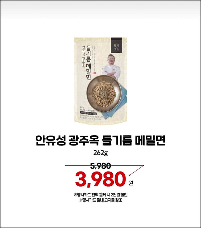 그리고 이번에는 이마트 단독 신제품인 등심 탕수육과 안유성 셰프의 레시피를 반영한 단독상품인 광주옥 들기름 메밀면을 행사카드 결제 시 각 6,980원 / 3,980원에 선보인다고 하니까 이 두 가지도 놓치지 마세요.