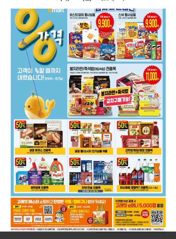 9월 4일부터 시작되는 이마트 고래잇 페스타 9월 전단지는 이마트 앱 또는 홈페이지를 통해서 확인할 수 있으니 참고하세요.