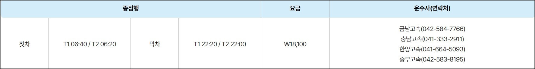 T1 / T2 첫차 막차 시간과 요금, 운수사를 확인할 수 있고,