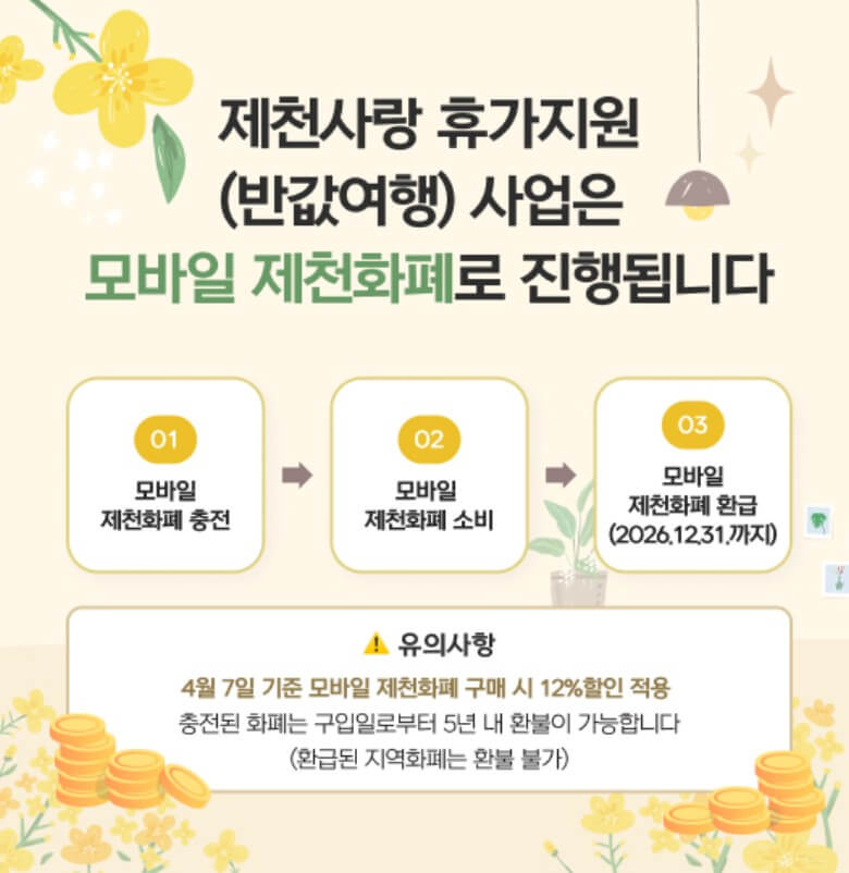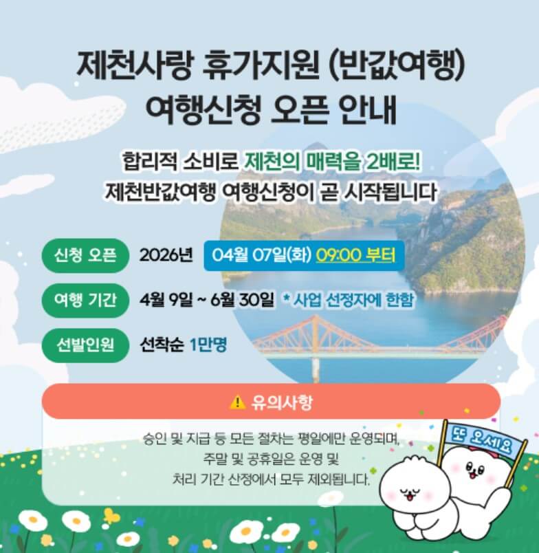 제천 반값여행 신청 사이트, 환급 조건, 신청 절차, 불가 지역, 지역화폐 사용처까지 2026년 최신 정보를 한 번에 정리했습니다. 신청 전 이 글 하나면 충분합니다.