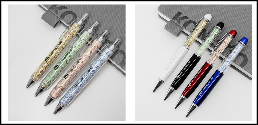 A4. 지폐 디자인의 문구류, 동전 모양의 초콜릿, 화폐 요소를 결합한 액세서리 등 다양한 생활 소품이 있습니다.