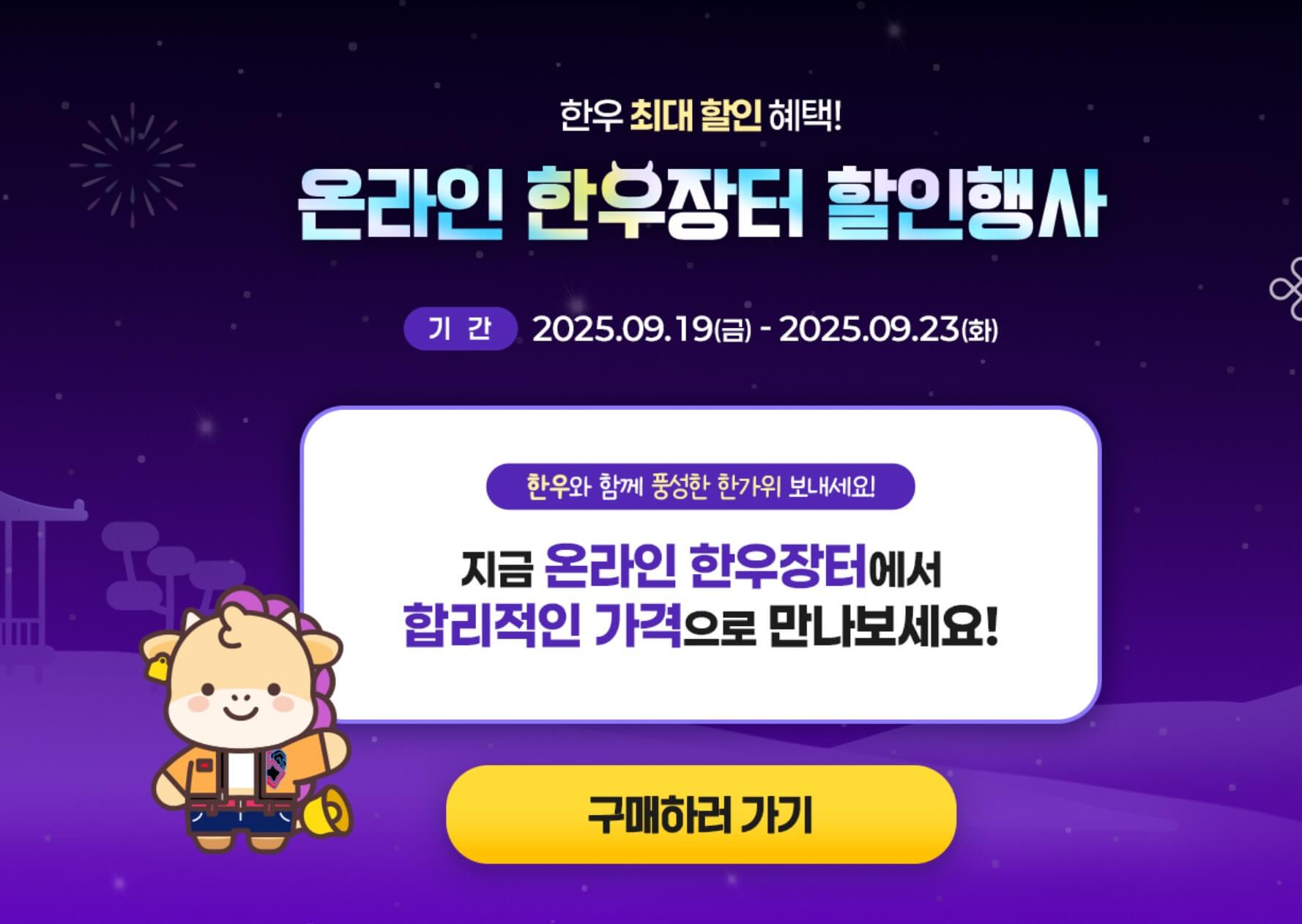 추석을 2주 앞두고 한우자조금관리위원회에서 9월 19일부터 23일까지 단 5일간 2025 추석맞이 온라인 한우장터를 특별 운영을 시작했어요. 평소 비싸서 부담스러웠던 한우를 이번 기회에 합리적인 가격으로 만날 수 있어서 정말 반가운 소식인데요~ 전국 18개 대표 한우 브랜드가 참여해서 품질도 믿을 수 있고, 가격도 착해서 추석 장보기 준비하는 분들에게 정말 도움이 될 것 같아요.